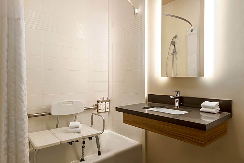 The suite's kitchen, which features a refrigerator and a microwave, is available for cooking and storing food. The suite offers air conditioning.